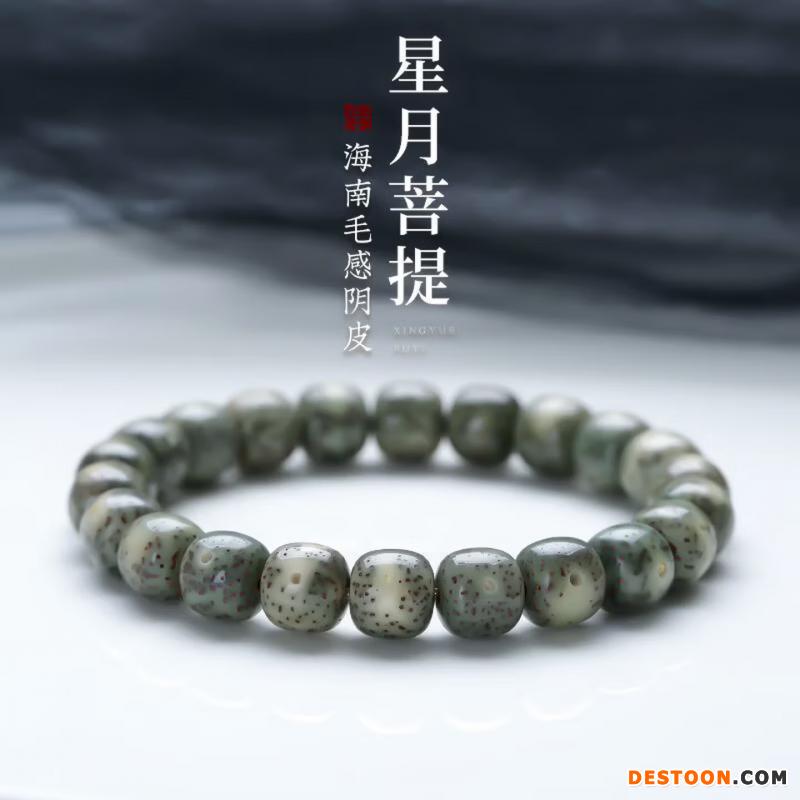 古董文玩正品原生态石玉料星月菩提手串收藏级幽灵绿阴皮天然配饰 9*10mm-中号珠子(男女通用)
