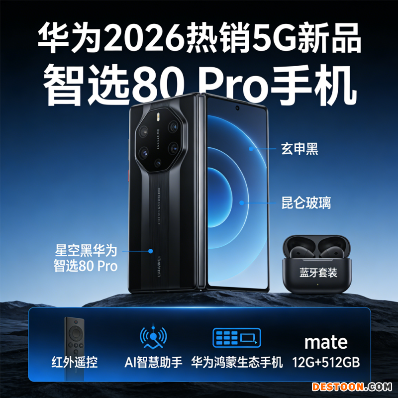 华为2026热销 5G新品 智选80 Pro手机 红外遥控 AI智慧助手昆仑玻璃+玄甲机身 华为鸿蒙生态手机 mate 星空黑 12G+512GB 蓝牙套装版
