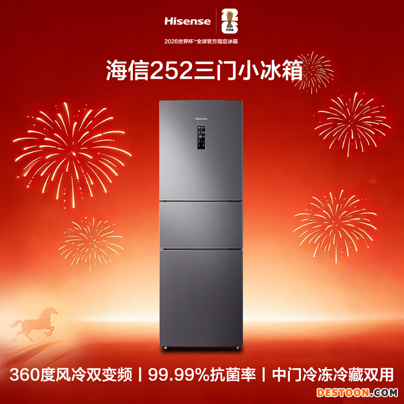 海信252L三门小冰箱一级能效风冷无霜小户型租房宿舍家用电冰箱灰色[251升级]BCD-252WYK1DPUJ国家补贴