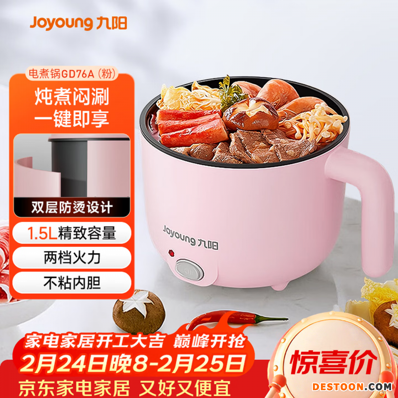 九阳(Joyoung)电煮锅电热锅小电锅宿舍小锅电蒸锅寝室一体泡面小火锅多功能锅1.5L电火锅GD76A粉