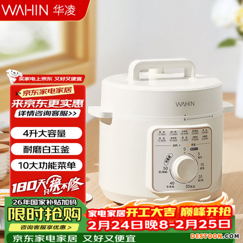 华凌美的出品 电压力锅4L 多功能高压锅不粘内胆饭煲煮锅开盖火锅10大菜单WH-YL4901E