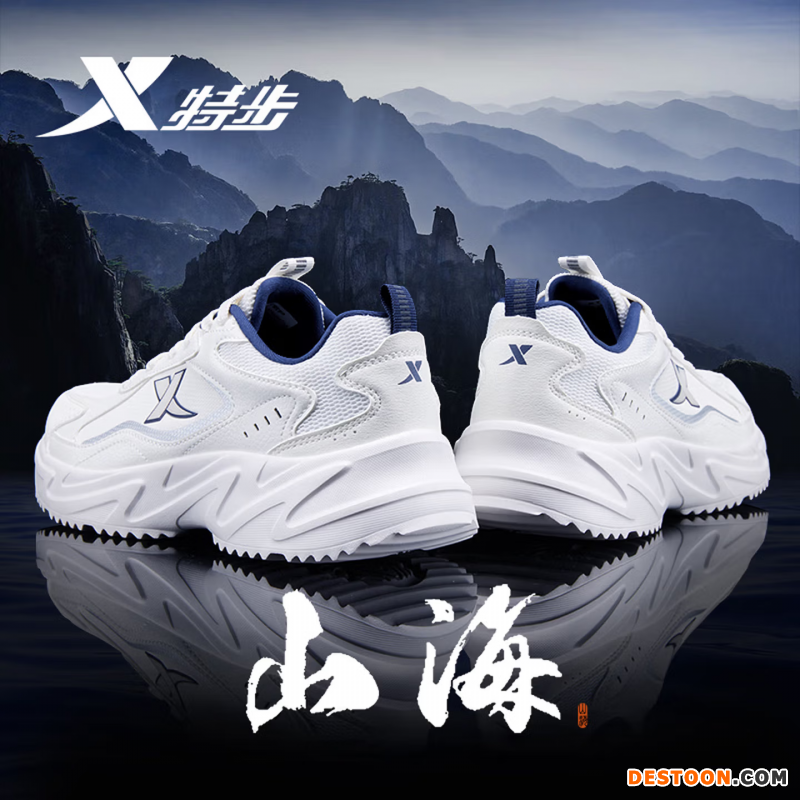 特步男鞋秋冬季运动鞋子男款青少年厚底增高防水老爹鞋山海系列休闲鞋 帆白0033【皮面】 42