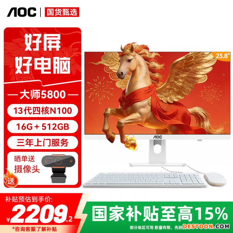 AOC国家补贴15%大师5800 23.8英寸办公商用一体机电脑台式电脑(13代N100 16G 512GB 小艾智能 键鼠)白