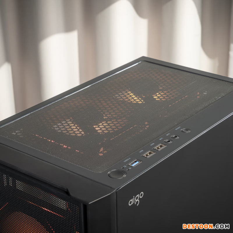 爱国者(aigo)御风JV19黑色 电脑台式主机箱 桌面matx小机箱(网孔通风/玻璃侧透/240水冷)