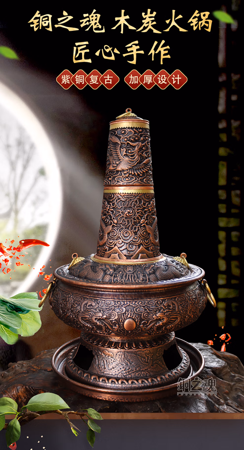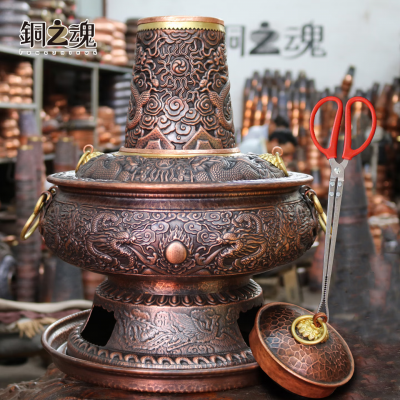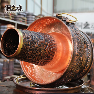 »铜之魂纯紫铜手工加厚木炭铜火锅仿古紫铜涮肉火锅炉厂家直销包邮