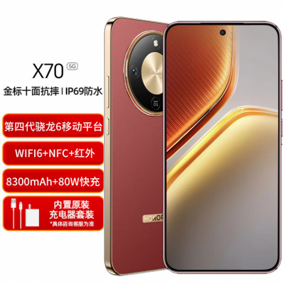 »华为智选X70 十面抗摔 8300mAh青海湖电池 IP69防水 智选5G手机 80W无线快充 NFC 红外功能 AI智能拍照 朱砂红 12GB+512GB