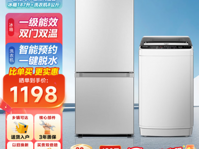»荣事达冰洗套装二门冰箱双开门+全自动洗衣机 冰箱洗衣机组合套装 冰箱187L银+全自动洗衣机8公斤