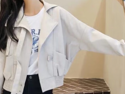 »AEMAPE外套女2026春秋冬季新款时尚减龄皮衣短外套女韩版宽松显瘦上衣 米白色 S _85-100斤可穿
