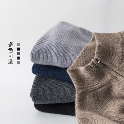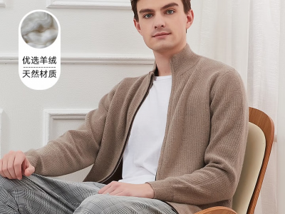 »恒源祥羊绒针织开衫男士拉链毛衣时尚针织衫外套秋冬季立领男装潮 藏青 XL 175